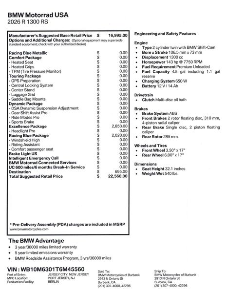 As sporty as it gets, or with optimized comfort for longer trips: The optional equipment for the R 1300 RS leaves nothing to be desired. The Performance model variant is designed for a dynamic riding style with its sport suspension, milled and adjustable footrest system, DTC-Shift and sport tires. If you would prefer to prioritize touring capabilities, you can also opt for seat heating, the Riding Assistant, windscreens of various heights, and numerous luggage options.